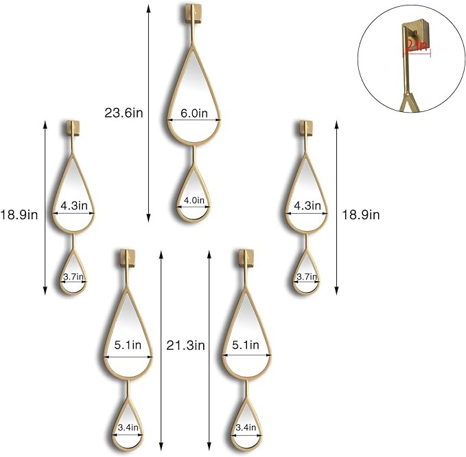 BAODANFU Wall Mirror Decorative Mirrors Mounted Decor Tear Drop Shape Gold for Bedroom Living Room Entryway Bathroom Vanity Brassy Gold Metal Frame, 5-Pack Mirrors Set