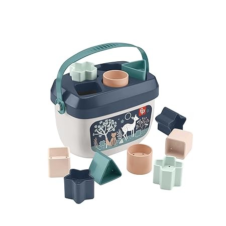 Fisher-Price Stacking Toy Baby’s First Blocks Set of 10 Shapes for Sorting Play Ages 6+ Months, Navy Fawn (Amazon Exclusive)