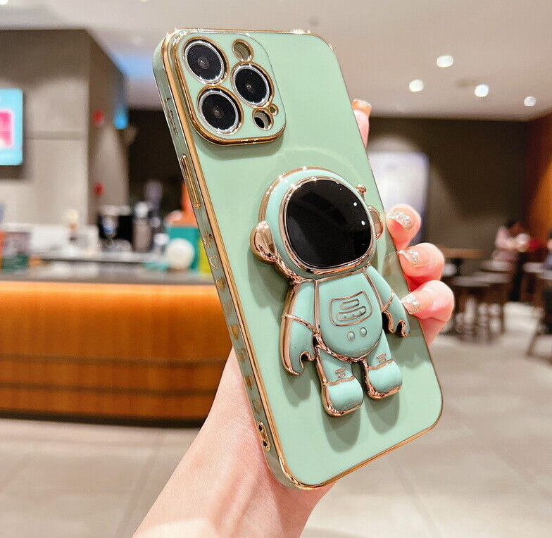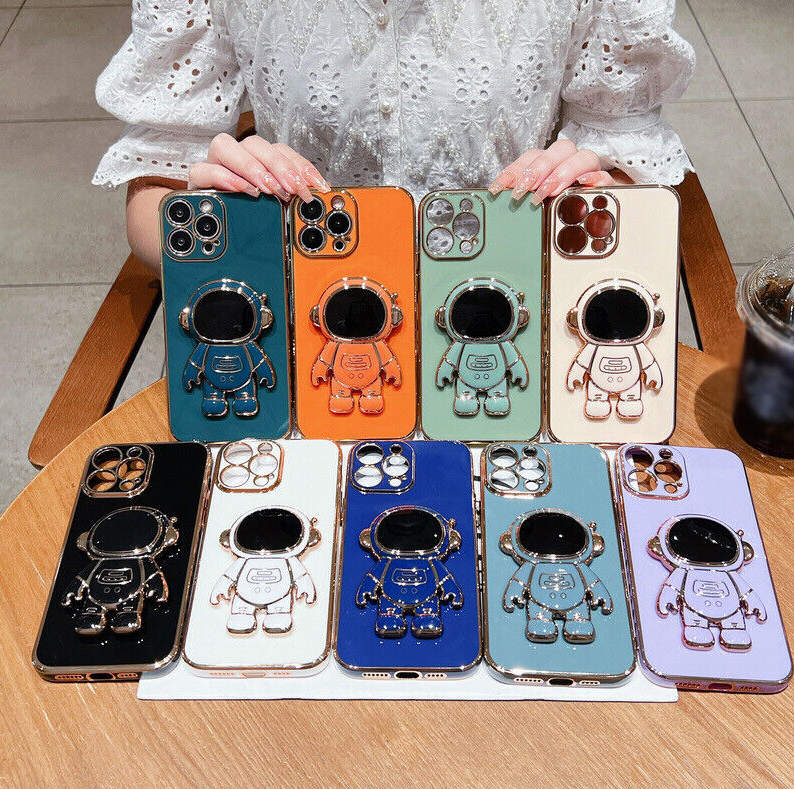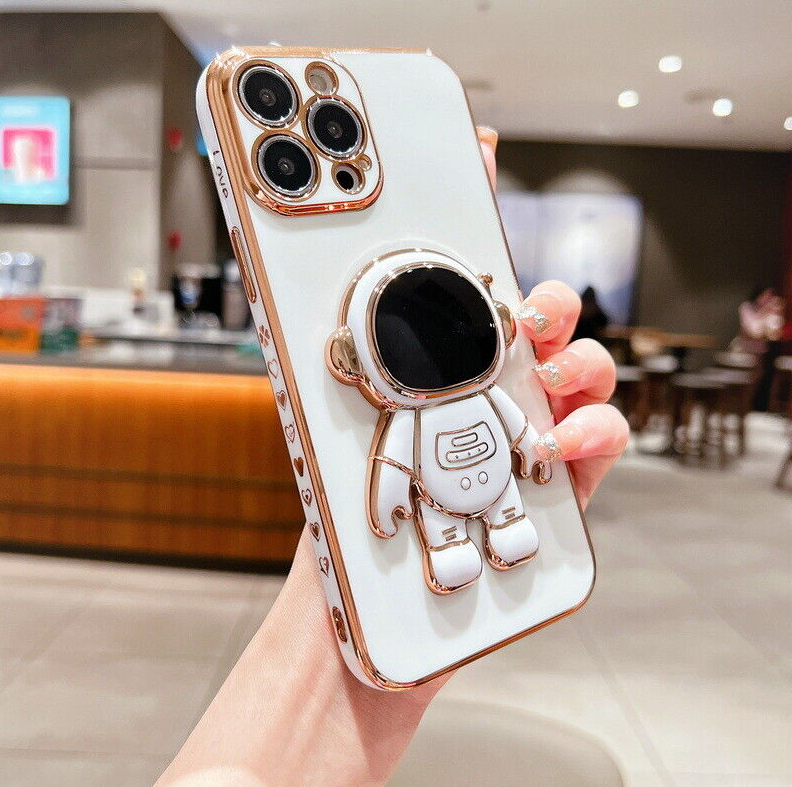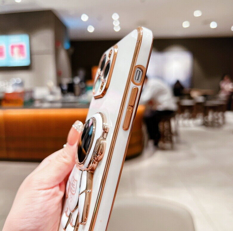 For iPhone 13 12 Pro Max 11 XR XS 7 8 Plus SE Plating Astronaut Stand Case Cover