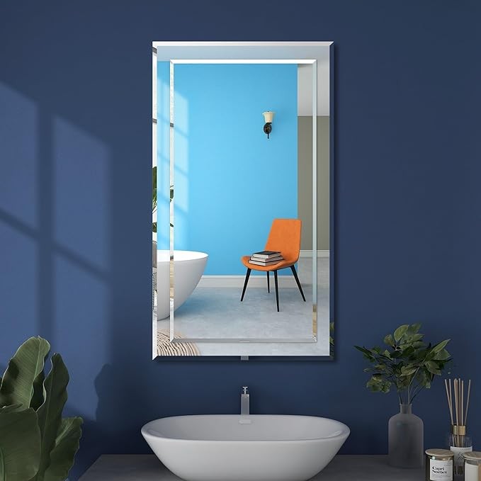 FRALIMK Mirror on Mirror Wall Mirror Beveled Edge Polished Frameless Rectangle Bathroom Mirror Decorative for Entryway, Bedroom, 16" x 28"