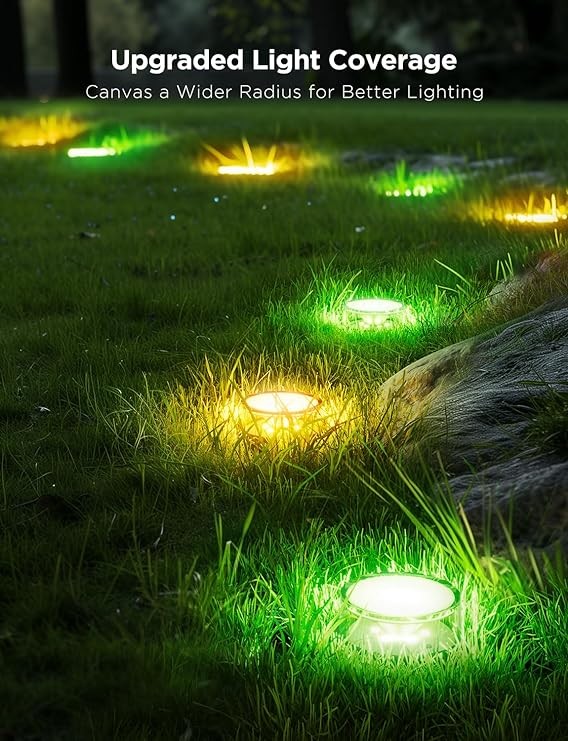 Upgraded Lighting Effect: Govee Outdoor Ground Lights 2 have a reflective cover design, which makes the light radius cover more than 11 inches from the product base. The brighter and wider light coverage creates a better outdoor experience.