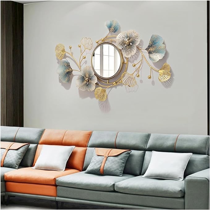 MODERN DESIGN: Creative handmade metal decorative Wall Mirror, The ginkgo leaf shape wall is made of wrought iron material forging, strong three-dimensional effect, High temperature resistant paint makes bright colors not easy to fade. Beautifully wall mirror of metal in a design that gives any indoor wall a striking dimensional look.