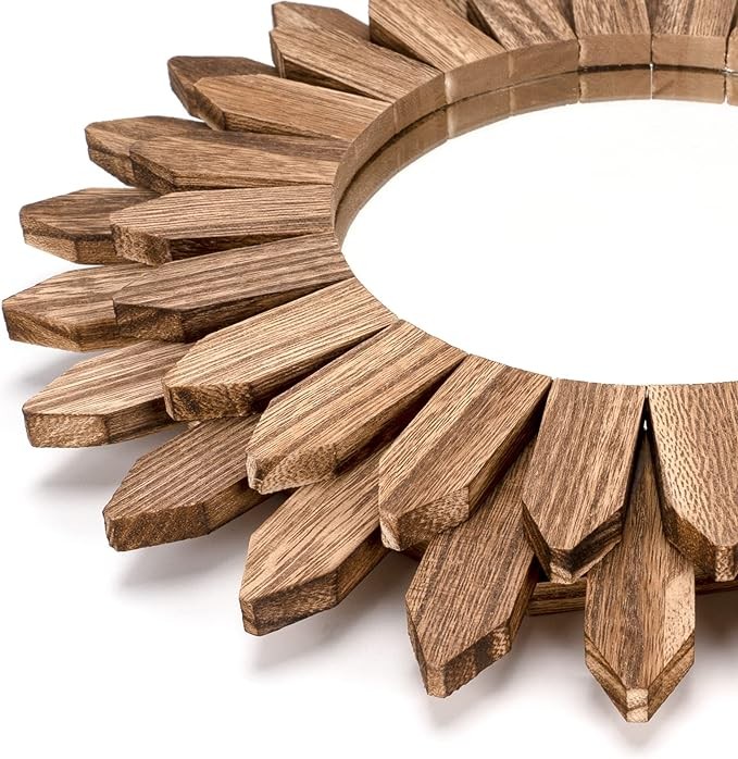 Boho Wall Decor 12 In Mirror—The design of wood sunburst base on the element of boho style, it will be a nice boho wall art and goes well with your boho decor, farmhouse decor country rustic decor,modern deocr style; A perfect room decorations for your bedroom, living room, bathroom, kitchen, fireplace, entryway, home office, school, new partment, guest room of hotel,