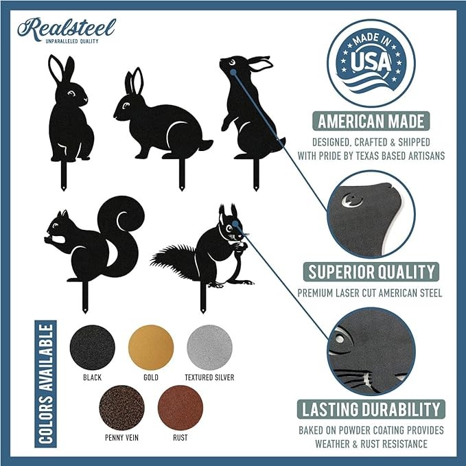 RealSteel, Metal Garden Sculptures & Statues, Yard Art, Flowerbed Decoration, Outdoor Decor, Animal Stake Pack