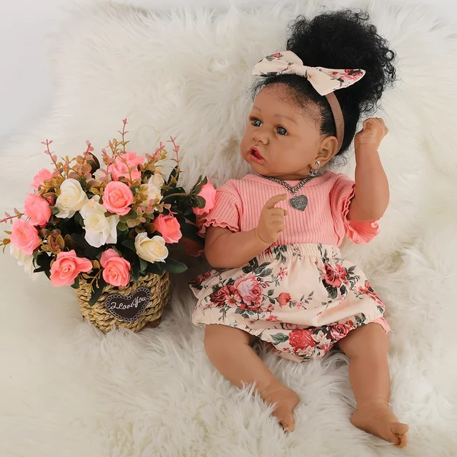 Takanini Newborn Baby Black Silicone Body Girl Doll Playset