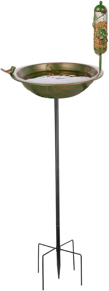 LARGE CAPACITY: metal bird bath diameter is 13 inches, which can hold enough water or food for birds to enjoy. And the overall height is 47 inches(Plus the height of the birdfeeder), is more taller than other freestanding bird baths on the market.
