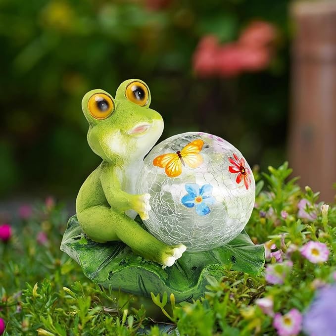 ?【IP44 Waterproof 】Frog garden statues are made of durable resin and treated with UV protection,durable enough to withstand changing weather conditions without cracking and fading. So you can keep the frog statues outdoors even in rainy or snowy weather